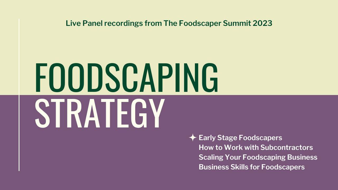 - Scaling Your Foodscaping Business with Amber Fuqua (Nashville Foodscapes), Dave Scandurra (Edible Landscapes of Cape Cod), and Joshua Rosenstein (Edible Eden Baltimore Foodscapes).
